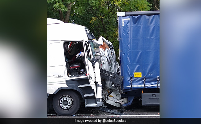 Van Crushed Between 2 Lorries Driver Somehow Escapes With Slight Injuries